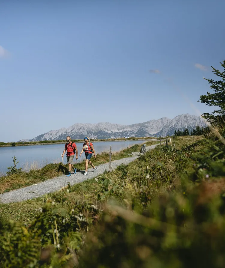 Ellmau, direkt am Wilden Kaiser, kann trotz schroffer Wände mit beeindruckenden Bergmassiven auch ganz sanft und überaus genussvoll sein. Wer entspannende Bewegung mit beeindruckenden alpinen Naturerlebnissen und typisch österreichischem Hüttenflair sucht, findet wunderbare Touren und lokale Gaumenfreuden aus der Region.