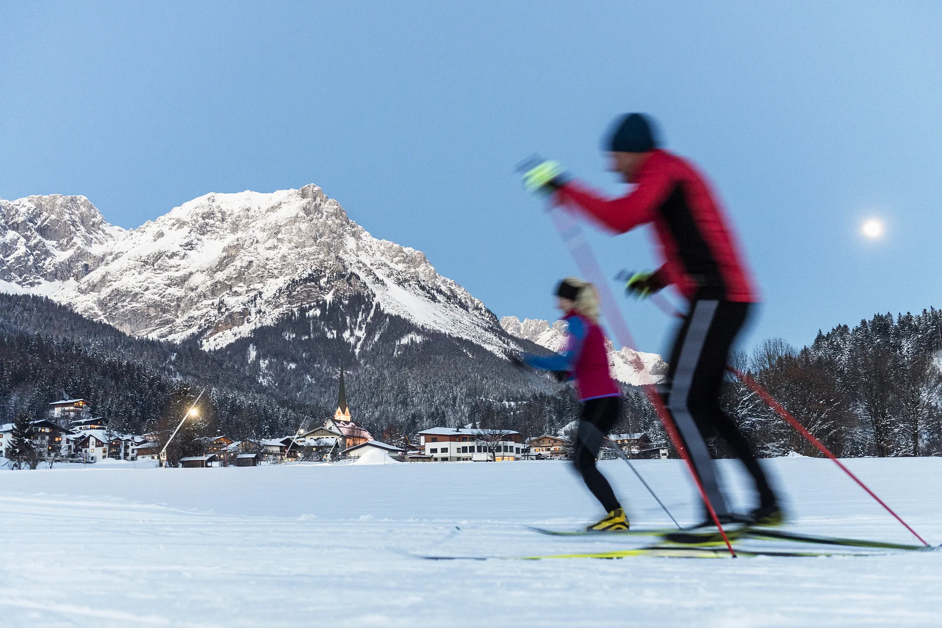 Die Genuss-Loipe schlechthin. Führt in zwei Varianten entlang des Golfplatzes und bietet einen spektakulären Blick auf das Kaisergebirge.
