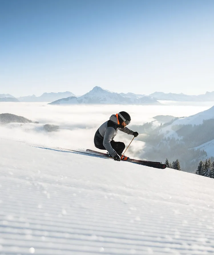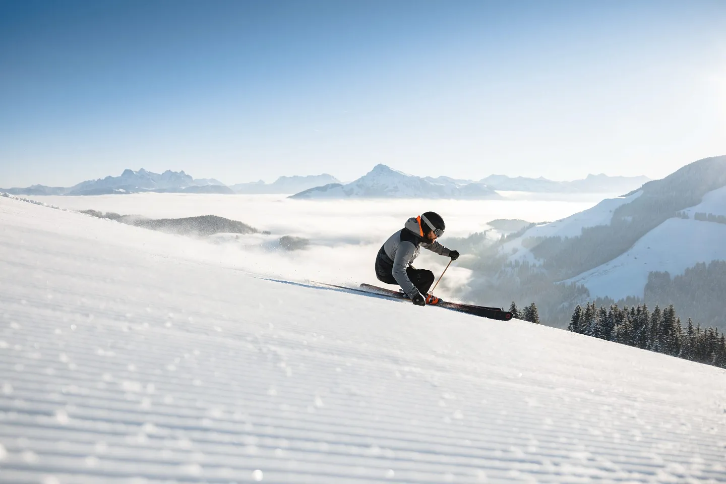 The world's longest ski circuit connects the SkiWelt Wilder Kaiser - Brixental with the KitzSki ski area (Kitzbühel/Kirchberg/Pass Thurn, accessible via Westendorf).