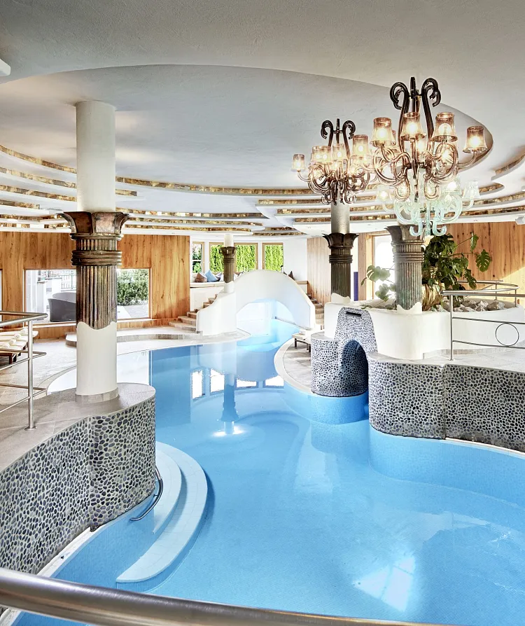 Spacious. Diverse. Vibrant. The wellness area, with its generous pools, expansive sauna complex and numerous cozy retreats, is exclusively available to guests of the Sporthotel Ellmau – the highest level of well-being is the top priority here. Therefore, "day spa" packages are deliberately omitted.